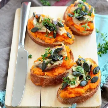 - Брускетта с тыквенным кремом и копчёной скумбрией - 12 шт.