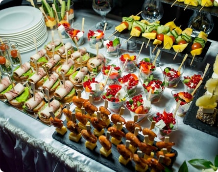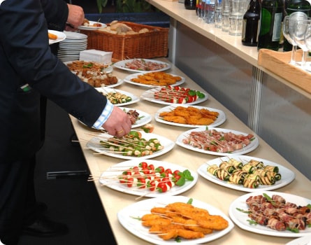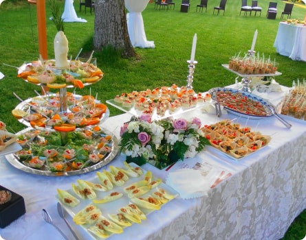 Основным преимуществом кейтеринга является возможность создания атмосферы ресторанного обслуживания в любой локации и для любого числа гостей.